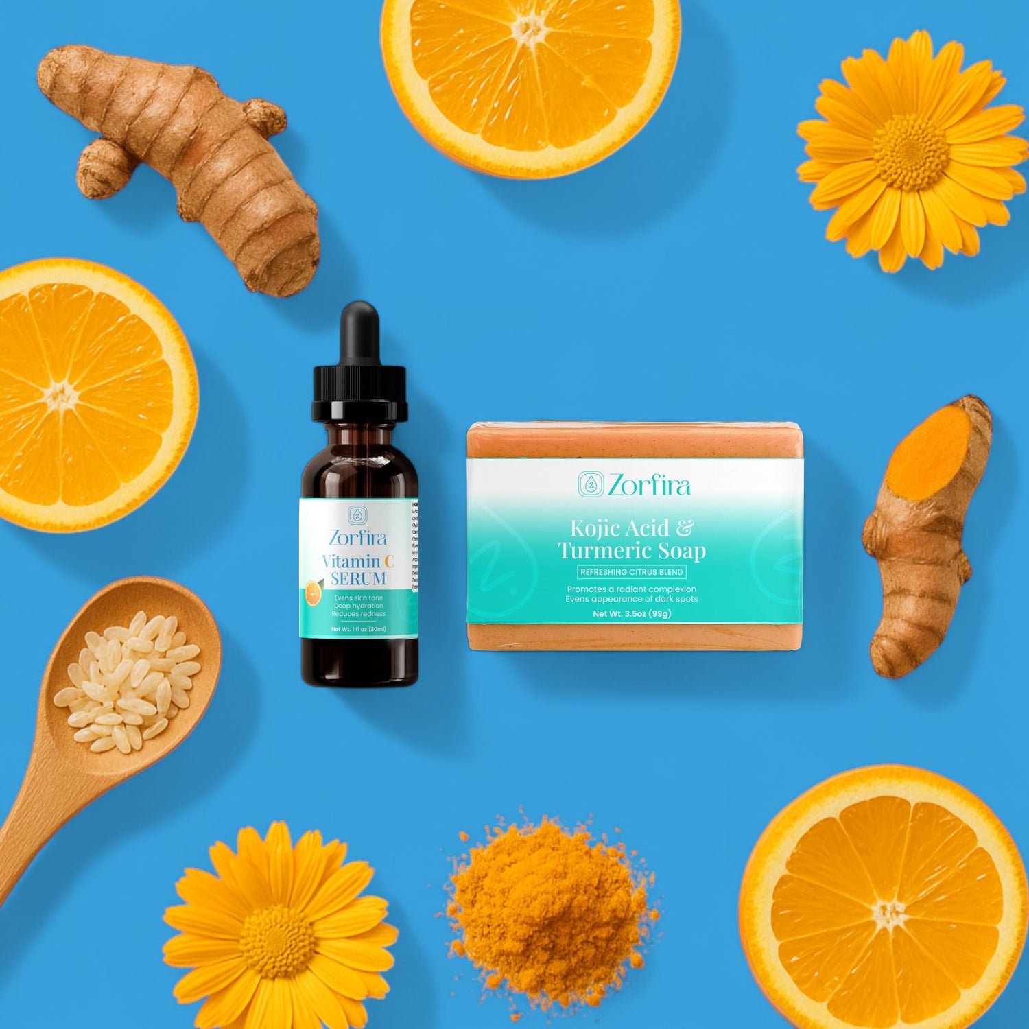 This powerful duo combines the brightening strength of Kojic Acid & Turmeric Soap with the antioxidant boost of Vitamin C Serum — for skin that’s fresh, even, and naturally radiant.